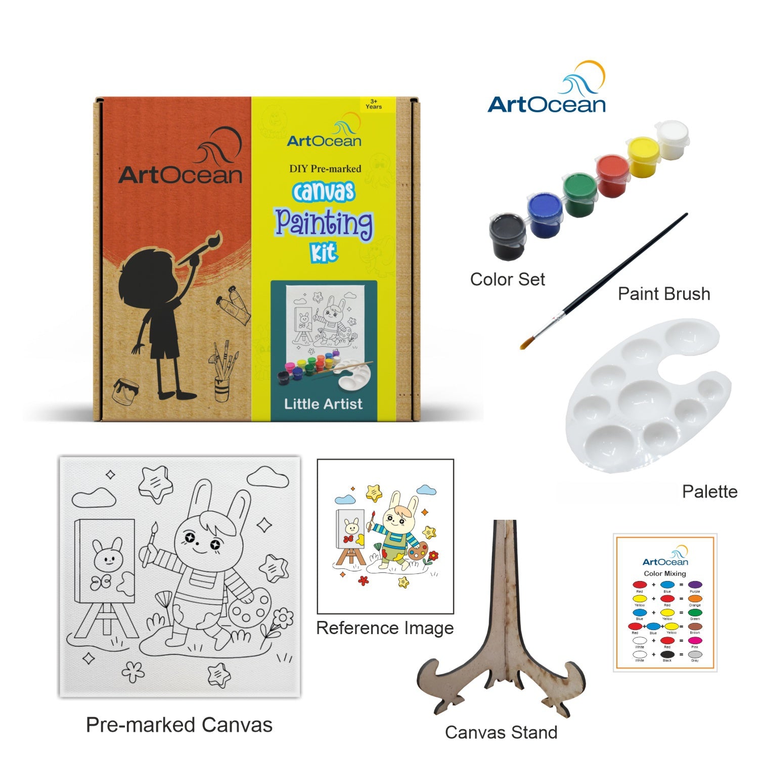 The kit features a pre-marked canvas board with a fun cartoon design, so they can easily follow along and paint within the lines. It comes with a set of vibrant paints in various colors, and a brush to help bring the artwork to life. Clear, color mixing chart, making it perfect for beginners or anyone looking to enjoy a creative activity. It’s a fun, hands-on way for kids to explore their artistic side while having a great time!
